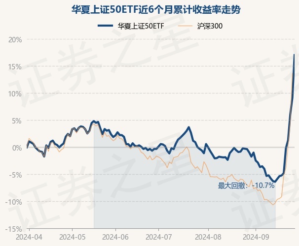 证券之星消息,9月30日,华夏上证50ETF最新单位净值为2.8666元,累计净值为4.1773元,较前一交易日上涨7.19%。历史数据显示该基金近1个月上涨18.19%,近3个月上涨17.39%,近6个月上涨17.03%,近1年上涨12.69%。该基金近6个月的累计收益率走势如下图: