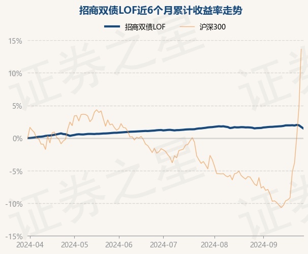 证券之星消息,9月30日,招商双债LOF最新单位净值为1.5625元,累计净值为1.7015元,较前一交易日下跌0.23%。历史数据显示该基金近1个月下跌0.08%,近3个月上涨0.24%,近6个月上涨1.47%,近1年上涨4.36%。该基金近6个月的累计收益率走势如下图:
