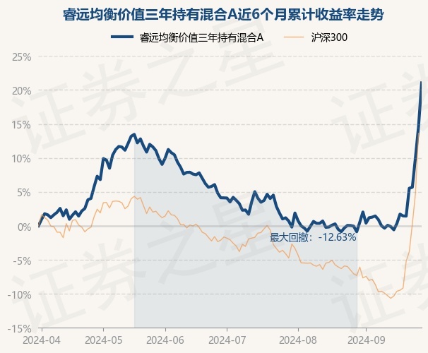 证券之星消息,9月30日,睿远均衡价值三年持有混合A最新单位净值为1.389元,累计净值为1.389元,较前一交易日上涨5.6%。历史数据显示该基金近1个月上涨18.62%,近3个月上涨16.24%,近6个月上涨21.04%,近1年上涨13.96%。该基金近6个月的累计收益率走势如下图: