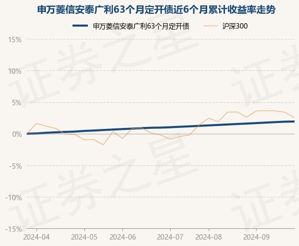 证券之星消息,9月30日,申万菱信安泰广利63个月定开债最新单位净值为1.0552元,累计净值为1.1482元,较前一交易日上涨0.03%。历史数据显示该基金近1个月上涨0.31%,近3个月上涨0.95%,近6个月上涨1.92%,近1年上涨3.75%。该基金近6个月的累计收益率走势如下图: