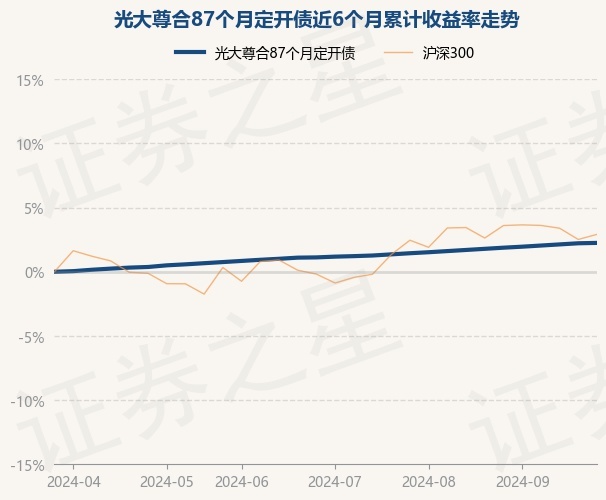 证券之星消息,9月30日,光大尊合87个月定开债最新单位净值为1.0405元,累计净值为1.1766元,较前一交易日上涨0.03%。历史数据显示该基金近1个月上涨0.37%,近3个月上涨1.12%,近6个月上涨2.25%,近1年上涨4.32%。该基金近6个月的累计收益率走势如下图:
