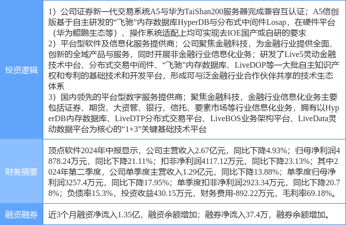 证券之星消息,顶点软件10月1日涨停收盘,收盘价37.7元。该股于9点25分涨停,2次打开涨停,截止收盘封单资金为7707.17万元,占其流通市值1.0%。