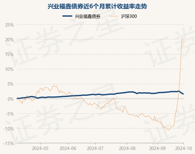证券之星消息,10月8日,兴业福鑫债券最新单位净值为1.0183元,累计净值为1.3083元,较前一交易日下跌0.24%。历史数据显示该基金近1个月下跌0.53%,近3个月上涨0.27%,近6个月上涨1.49%,近1年上涨4.39%。该基金近6个月的累计收益率走势如下图: