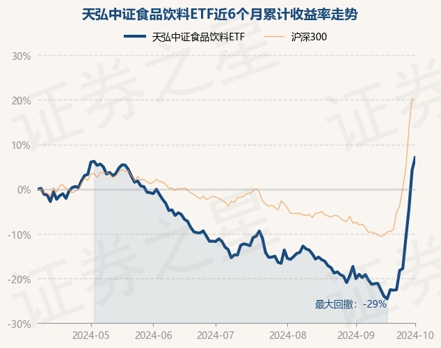 证券之星消息,10月8日,天弘中证食品饮料ETF最新单位净值为0.7965元,累计净值为0.7965元,较前一交易日上涨2.71%。历史数据显示该基金近1个月上涨34.45%,近3个月上涨26.53%,近6个月上涨7.1%,近1年下跌3.78%。该基金近6个月的累计收益率走势如下图:
