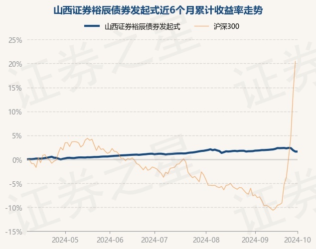 山西证券裕辰债券发起式为债券型-混合一级基金,根据最新一期基金季报显示,该基金资产配置:无股票类资产,债券占净值比120.87%,现金占净值比0.07%。