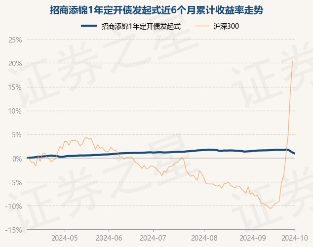 证券之星消息,10月8日,招商添锦1年定开债发起式最新单位净值为1.0444元,累计净值为1.1239元,较前一交易日下跌0.17%。历史数据显示该基金近1个月下跌0.62%,近3个月下跌0.19%,近6个月上涨0.97%,近1年上涨3.32%。该基金近6个月的累计收益率走势如下图: