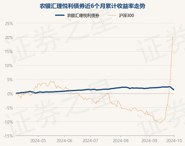 证券之星消息,10月8日,农银汇理悦利债券最新单位净值为1.0134元,累计净值为1.1004元,较前一交易日下跌0.22%。历史数据显示该基金近1个月下跌0.7%,近3个月上涨0.08%,近6个月上涨1.31%,近1年上涨4.2%。该基金近6个月的累计收益率走势如下图: