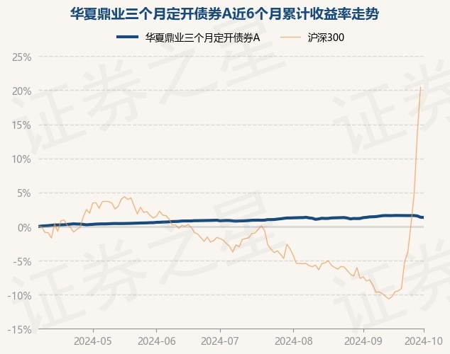 证券之星消息,10月8日,华夏鼎业三个月定开债券A最新单位净值为1.022元,累计净值为1.0845元,较前一交易日下跌0.03%。历史数据显示该基金近1个月下跌0.12%,近3个月上涨0.54%,近6个月上涨1.33%,近1年上涨2.97%。该基金近6个月的累计收益率走势如下图: