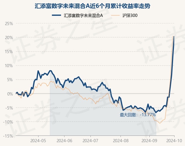 证券之星消息,10月8日,汇添富数字未来混合A最新单位净值为0.6622元,累计净值为0.6622元,较前一交易日上涨5.58%。历史数据显示该基金近1个月上涨27.96%,近3个月上涨19.27%,近6个月上涨20.18%,近1年上涨7.43%。该基金近6个月的累计收益率走势如下图: