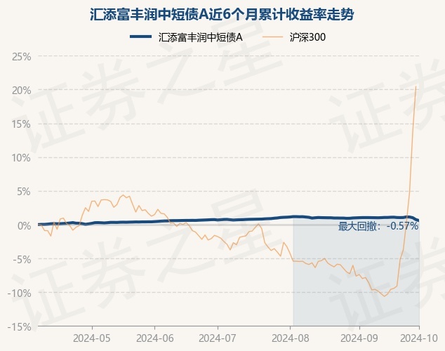 证券之星消息,10月8日,汇添富丰润中短债A最新单位净值为1.0777元,累计净值为1.1907元,较前一交易日下跌0.14%。历史数据显示该基金近1个月下跌0.43%,近3个月下跌0.07%,近6个月上涨0.6%,近1年上涨4.2%。该基金近6个月的累计收益率走势如下图:
