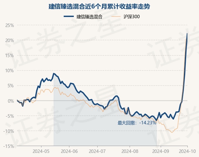 证券之星消息,10月8日,建信臻选混合最新单位净值为0.9249元,累计净值为0.9249元,较前一交易日上涨4.5%。历史数据显示该基金近1个月上涨27.94%,近3个月上涨25.65%,近6个月上涨22.05%,近1年上涨10.45%。该基金近6个月的累计收益率走势如下图: