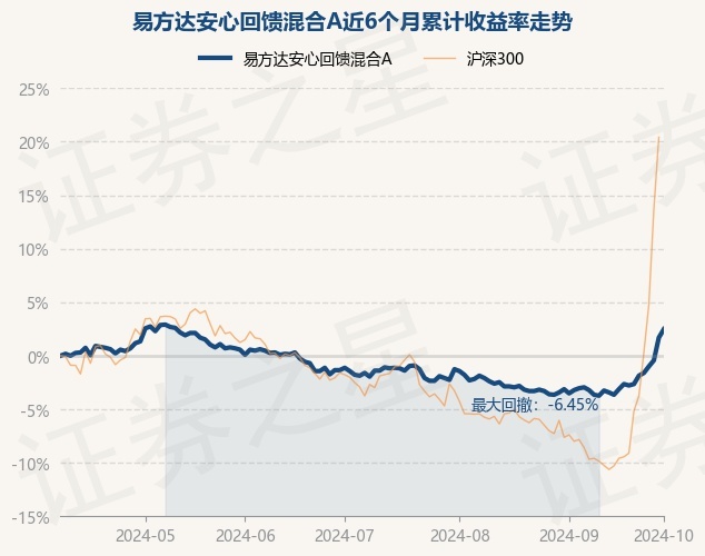 证券之星消息,10月8日,易方达安心回馈混合A最新单位净值为2.361元,累计净值为2.361元,较前一交易日上涨0.77%。历史数据显示该基金近1个月上涨5.87%,近3个月上涨4.52%,近6个月上涨2.47%,近1年上涨2.12%。该基金近6个月的累计收益率走势如下图: