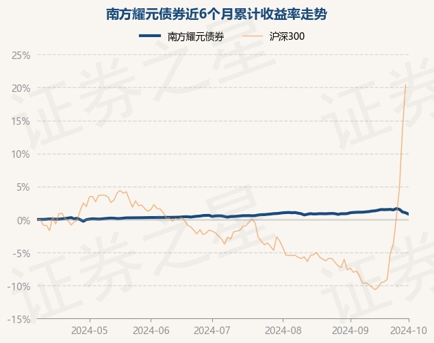 证券之星消息,10月8日,南方耀元债券最新单位净值为1.0146元,累计净值为1.0476元,较前一交易日下跌0.22%。历史数据显示该基金近1个月下跌0.29%,近3个月上涨0.45%,近6个月上涨0.8%,近1年上涨2.78%。该基金近6个月的累计收益率走势如下图: