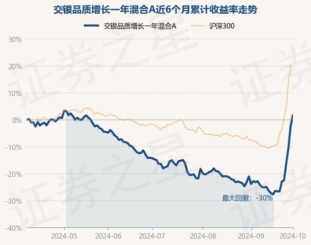 证券之星消息,10月8日,交银品质增长一年混合A最新单位净值为0.7814元,累计净值为0.7814元,较前一交易日上涨4.19%。历史数据显示该基金近1个月上涨33.98%,近3个月上涨24.05%,近6个月上涨1.65%,近1年下跌12.49%。该基金近6个月的累计收益率走势如下图: