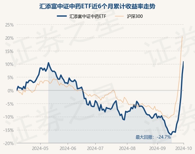 证券之星消息,10月8日,汇添富中证中药ETF最新单位净值为1.2168元,累计净值为1.2168元,较前一交易日上涨4.4%。历史数据显示该基金近1个月上涨24.47%,近3个月上涨19.78%,近6个月上涨10.79%,近1年上涨0.63%。该基金近6个月的累计收益率走势如下图: