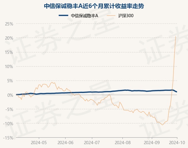 证券之星消息,10月8日,中信保诚稳丰A最新单位净值为1.0799元,累计净值为1.2865元,较前一交易日下跌0.12%。历史数据显示该基金近1个月下跌0.43%,近3个月上涨0.1%,近6个月上涨1.0%,近1年上涨2.95%。该基金近6个月的累计收益率走势如下图: