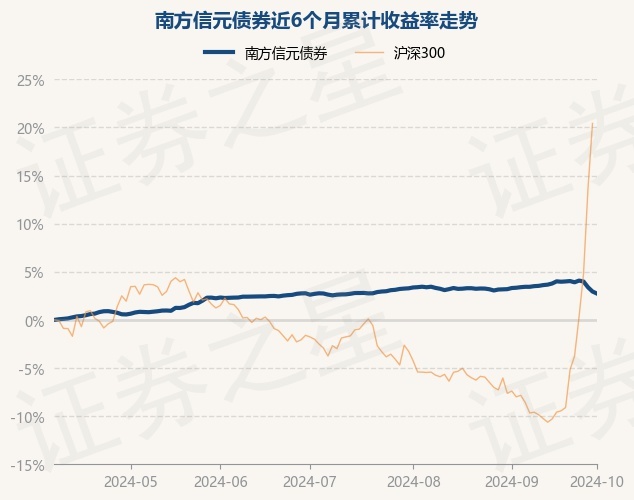 证券之星消息,10月8日,南方信元债券最新单位净值为1.0516元,累计净值为1.0978元,较前一交易日下跌0.21%。历史数据显示该基金近1个月下跌0.68%,近3个月上涨0.18%,近6个月上涨2.74%,近1年上涨5.66%。该基金近6个月的累计收益率走势如下图: