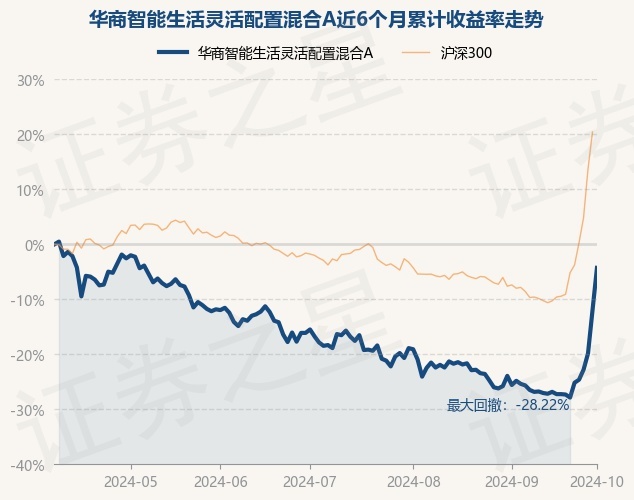 证券之星消息,10月8日,华商智能生活灵活配置混合A最新单位净值为1.384元,累计净值为1.384元,较前一交易日上涨8.81%。历史数据显示该基金近1个月上涨30.2%,近3个月上涨17.99%,近6个月下跌4.29%,近1年下跌27.84%。该基金近6个月的累计收益率走势如下图: