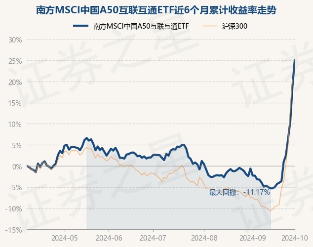 证券之星消息,10月8日,南方MSCI中国A50互联互通ETF最新单位净值为0.8906元,累计净值为0.9066元,较前一交易日上涨5.06%。历史数据显示该基金近1个月上涨30.05%,近3个月上涨23.26%,近6个月上涨24.97%,近1年上涨21.49%。该基金近6个月的累计收益率走势如下图: