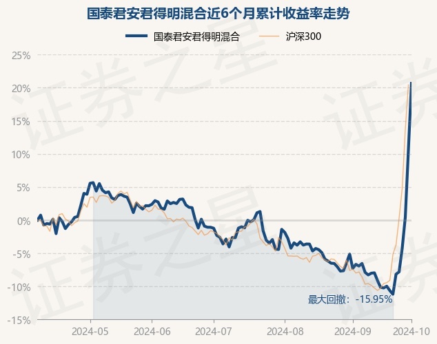 证券之星消息,10月8日,国泰君安君得明混合最新单位净值为2.1863元,累计净值为3.1363元,较前一交易日上涨9.12%。历史数据显示该基金近1个月上涨30.99%,近3个月上涨25.74%,近6个月上涨20.65%,近1年上涨5.88%。该基金近6个月的累计收益率走势如下图: