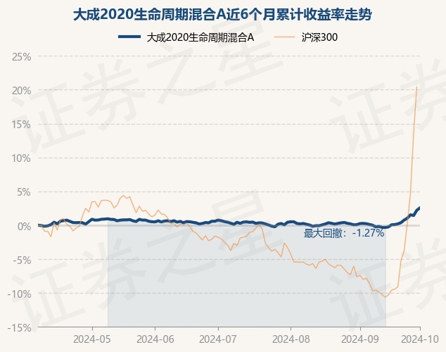 证券之星消息,10月8日,大成2020生命周期混合A最新单位净值为0.959元,累计净值为2.781元,较前一交易日上涨0.35%。历史数据显示该基金近1个月上涨2.56%,近3个月上涨2.42%,近6个月上涨2.56%,近1年上涨4.92%。该基金近6个月的累计收益率走势如下图: