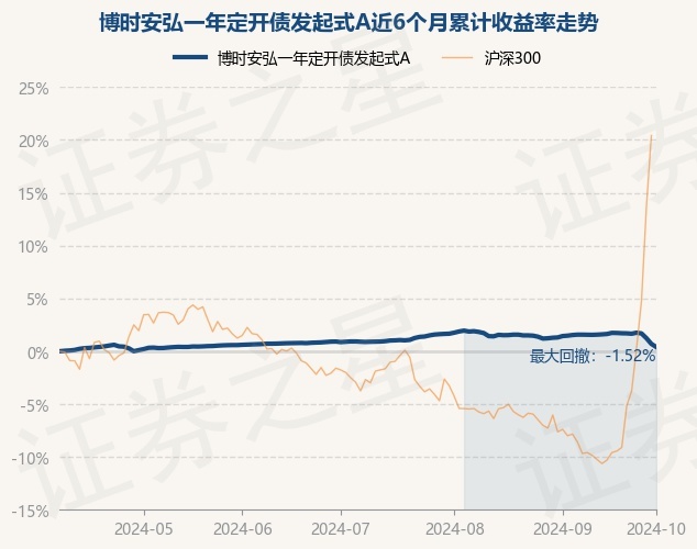 证券之星消息,10月8日,博时安弘一年定开债发起式A最新单位净值为1.137元,累计净值为1.2966元,较前一交易日下跌0.3%。历史数据显示该基金近1个月下跌1.16%,近3个月下跌0.48%,近6个月上涨0.4%,近1年上涨3.0%。该基金近6个月的累计收益率走势如下图: