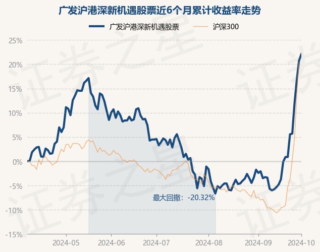 证券之星消息,10月8日,广发沪港深新机遇股票最新单位净值为1.118元,累计净值为1.255元,较前一交易日上涨1.08%。历史数据显示该基金近1个月上涨26.33%,近3个月上涨18.06%,近6个月上涨22.05%,近1年上涨15.85%。该基金近6个月的累计收益率走势如下图: