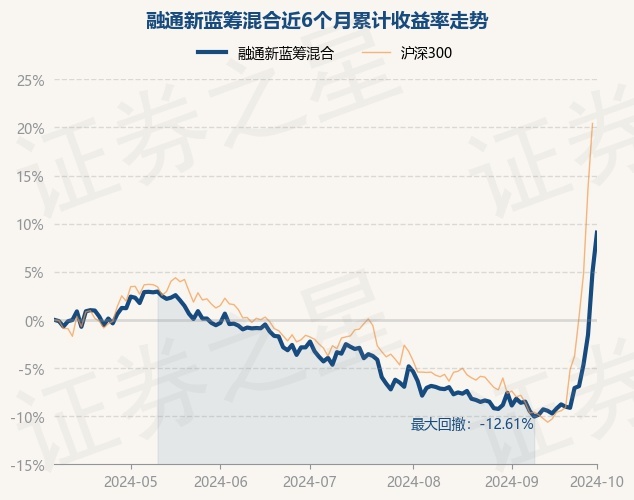 证券之星消息,10月8日,融通新蓝筹混合最新单位净值为0.8525元,累计净值为3.1675元,较前一交易日上涨3.93%。历史数据显示该基金近1个月上涨20.48%,近3个月上涨14.4%,近6个月上涨9.07%,近1年上涨1.42%。该基金近6个月的累计收益率走势如下图: