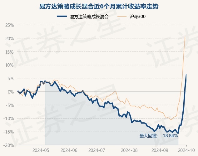 证券之星消息,10月8日,易方达策略成长混合最新单位净值为3.387元,累计净值为5.33元,较前一交易日上涨4.76%。历史数据显示该基金近1个月上涨24.29%,近3个月上涨13.13%,近6个月上涨6.28%,近1年下跌3.03%。该基金近6个月的累计收益率走势如下图: