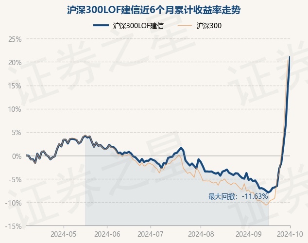 证券之星消息,10月8日,沪深300LOF建信最新单位净值为1.7232元,累计净值为1.7232元,较前一交易日上涨5.47%。历史数据显示该基金近1个月上涨28.78%,近3个月上涨24.36%,近6个月上涨21.01%,近1年上涨16.7%。该基金近6个月的累计收益率走势如下图:
