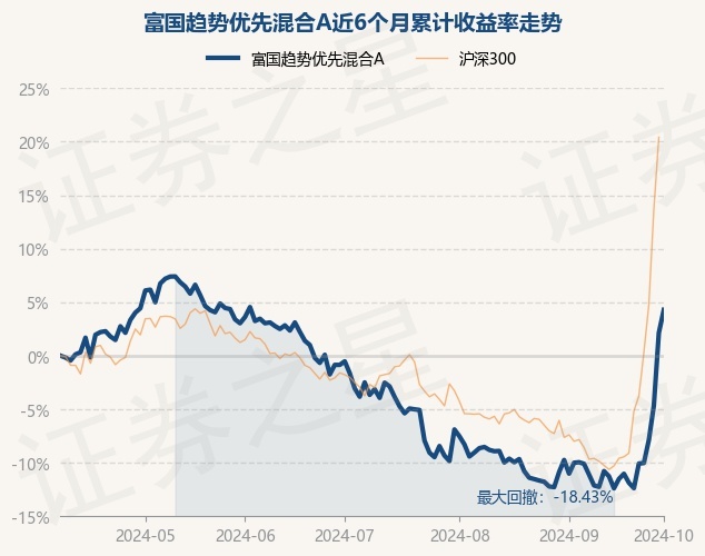 证券之星消息,10月8日,富国趋势优先混合A最新单位净值为0.8417元,累计净值为0.8417元,较前一交易日上涨2.11%。历史数据显示该基金近1个月上涨17.31%,近3个月上涨8.24%,近6个月上涨4.29%,近1年上涨2.72%。该基金近6个月的累计收益率走势如下图: