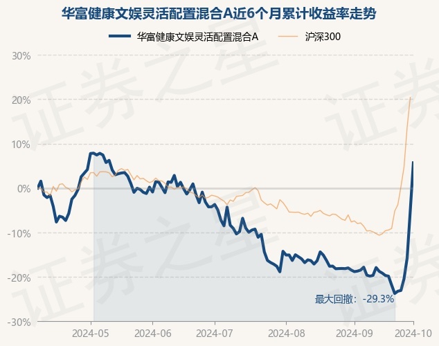 证券之星消息,10月8日,华富健康文娱灵活配置混合A最新单位净值为1.0711元,累计净值为1.2311元,较前一交易日上涨11.43%。历史数据显示该基金近1个月上涨31.47%,近3个月上涨15.33%,近6个月上涨5.69%,近1年上涨2.61%。该基金近6个月的累计收益率走势如下图: