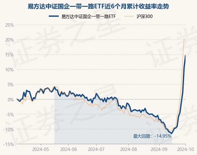证券之星消息,10月8日,易方达中证国企一带一路ETF最新单位净值为1.439元,累计净值为1.439元,较前一交易日上涨3.54%。历史数据显示该基金近1个月上涨25.13%,近3个月上涨15.45%,近6个月上涨14.52%,近1年上涨15.75%。该基金近6个月的累计收益率走势如下图: