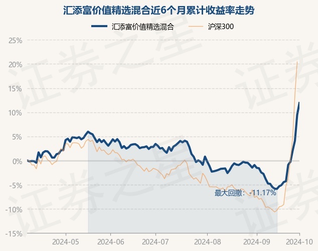 证券之星消息,10月8日,汇添富价值精选混合最新单位净值为2.694元,累计净值为4.391元,较前一交易日上涨2.24%。历史数据显示该基金近1个月上涨16.37%,近3个月上涨10.14%,近6个月上涨11.92%,近1年上涨11.37%。该基金近6个月的累计收益率走势如下图: