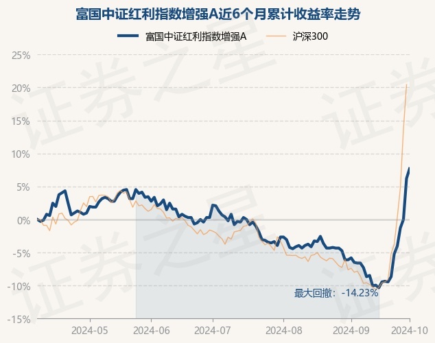 证券之星消息,10月8日,富国中证红利指数增强A最新单位净值为1.093元,累计净值为3.27元,较前一交易日上涨1.39%。历史数据显示该基金近1个月上涨16.15%,近3个月上涨7.9%,近6个月上涨7.68%,近1年上涨12.99%。该基金近6个月的累计收益率走势如下图: