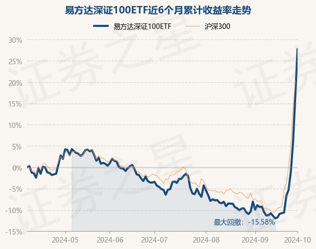 证券之星消息,10月8日,易方达深证100ETF最新单位净值为3.135元,累计净值为6.0672元,较前一交易日上涨9.32%。历史数据显示该基金近1个月上涨42.64%,近3个月上涨36.47%,近6个月上涨27.69%,近1年上涨18.99%。该基金近6个月的累计收益率走势如下图: