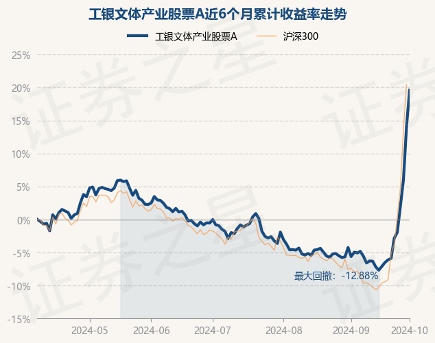 证券之星消息,10月8日,工银文体产业股票A最新单位净值为3.067元,累计净值为3.256元,较前一交易日上涨4.82%。历史数据显示该基金近1个月上涨26.63%,近3个月上涨23.12%,近6个月上涨19.57%,近1年上涨15.13%。该基金近6个月的累计收益率走势如下图: