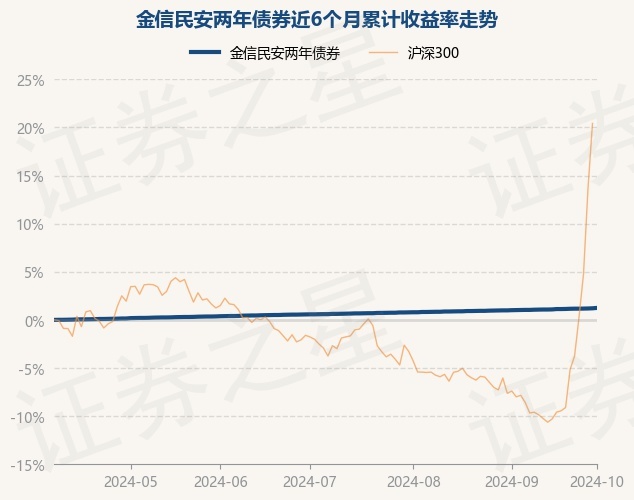 证券之星消息,10月8日,金信民安两年债券最新单位净值为1.0326元,累计净值为1.0326元,较前一交易日上涨0.04%。历史数据显示该基金近1个月上涨0.2%,近3个月上涨0.61%,近6个月上涨1.25%,近1年上涨2.39%。该基金近6个月的累计收益率走势如下图: