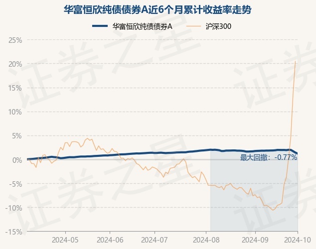 证券之星消息,10月8日,华富恒欣纯债债券A最新单位净值为1.1024元,累计净值为1.1744元,较前一交易日下跌0.19%。历史数据显示该基金近1个月下跌0.57%,近3个月下跌0.08%,近6个月上涨1.22%,近1年上涨4.05%。该基金近6个月的累计收益率走势如下图: