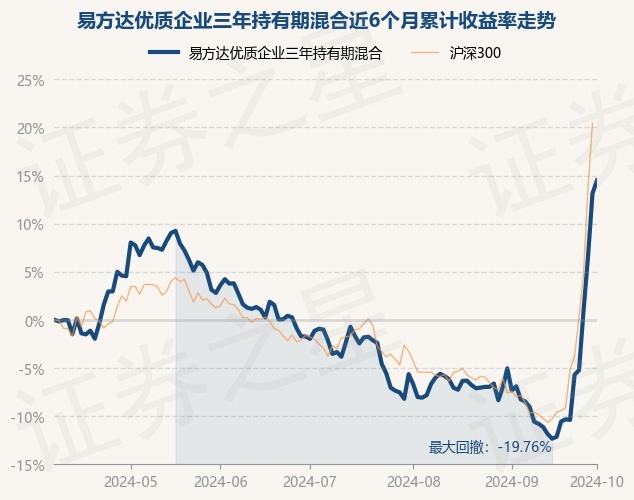 证券之星消息,10月8日,易方达优质企业三年持有期混合最新单位净值为0.9594元,累计净值为0.9594元,较前一交易日上涨1.19%。历史数据显示该基金近1个月上涨25.89%,近3个月上涨18.68%,近6个月上涨14.49%,近1年上涨0.38%。该基金近6个月的累计收益率走势如下图:
