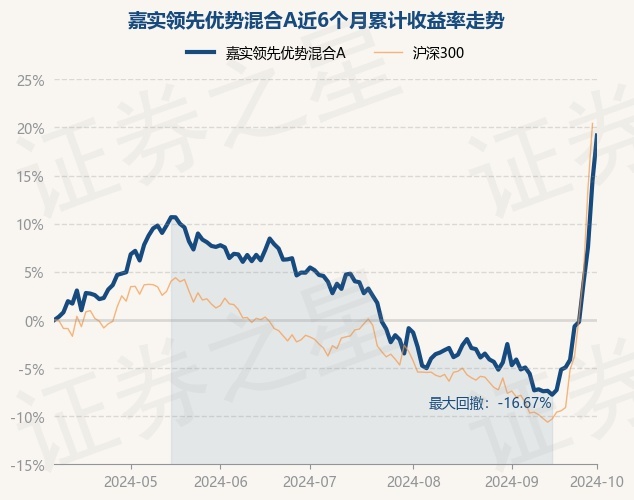 证券之星消息,10月8日,嘉实领先优势混合A最新单位净值为0.9981元,累计净值为0.9981元,较前一交易日上涨4.11%。历史数据显示该基金近1个月上涨26.23%,近3个月上涨15.95%,近6个月上涨19.16%,近1年上涨17.23%。该基金近6个月的累计收益率走势如下图:
