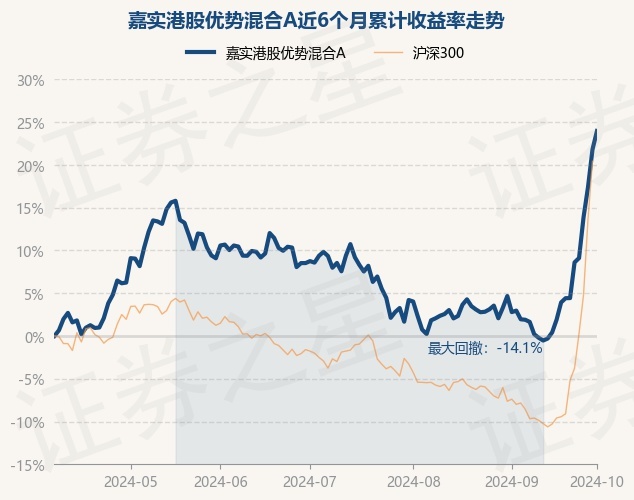 证券之星消息,10月8日,嘉实港股优势混合A最新单位净值为0.9299元,累计净值为0.9299元,较前一交易日上涨1.77%。历史数据显示该基金近1个月上涨21.95%,近3个月上涨14.8%,近6个月上涨23.95%,近1年上涨23.89%。该基金近6个月的累计收益率走势如下图: