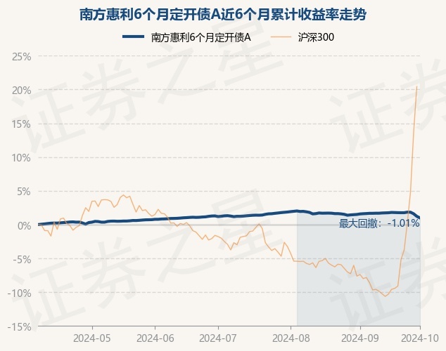 证券之星消息,10月8日,南方惠利6个月定开债A最新单位净值为1.218元,累计净值为1.258元,较前一交易日下跌0.23%。历史数据显示该基金近1个月下跌0.67%,近3个月下跌0.18%,近6个月上涨0.99%,近1年上涨3.74%。该基金近6个月的累计收益率走势如下图: