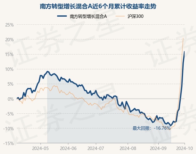 证券之星消息,10月8日,南方转型增长混合A最新单位净值为2.0259元,累计净值为2.0259元,较前一交易日上涨3.31%。历史数据显示该基金近1个月上涨25.18%,近3个月上涨16.34%,近6个月上涨15.77%,近1年上涨10.58%。该基金近6个月的累计收益率走势如下图: