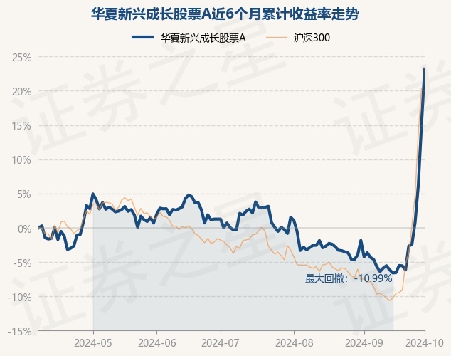证券之星消息,10月8日,华夏新兴成长股票A最新单位净值为0.7742元,累计净值为0.7742元,较前一交易日上涨7.07%。历史数据显示该基金近1个月上涨30.58%,近3个月上涨23.46%,近6个月上涨23.16%,近1年上涨17.23%。该基金近6个月的累计收益率走势如下图: