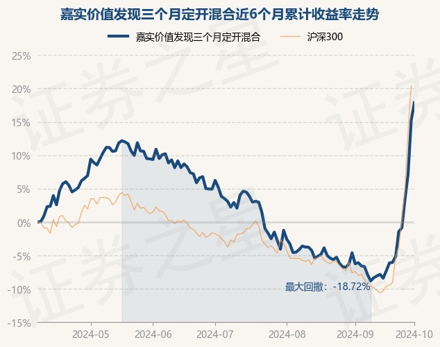 证券之星消息,10月8日,嘉实价值发现三个月定开混合最新单位净值为1.0566元,累计净值为1.1545元,较前一交易日上涨2.3%。历史数据显示该基金近1个月上涨27.98%,近3个月上涨15.29%,近6个月上涨17.86%,近1年上涨12.7%。该基金近6个月的累计收益率走势如下图: