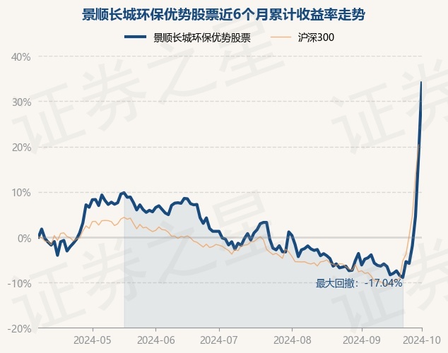 证券之星消息,10月8日,景顺长城环保优势股票最新单位净值为3.209元,累计净值为3.209元,较前一交易日上涨13.27%。历史数据显示该基金近1个月上涨42.18%,近3个月上涨37.67%,近6个月上涨34.04%,近1年上涨7.94%。该基金近6个月的累计收益率走势如下图: