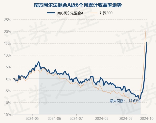 证券之星消息,10月8日,南方阿尔法混合A最新单位净值为0.5342元,累计净值为0.5342元,较前一交易日上涨5.28%。历史数据显示该基金近1个月上涨22.16%,近3个月上涨17.61%,近6个月上涨15.38%,近1年上涨9.33%。该基金近6个月的累计收益率走势如下图: