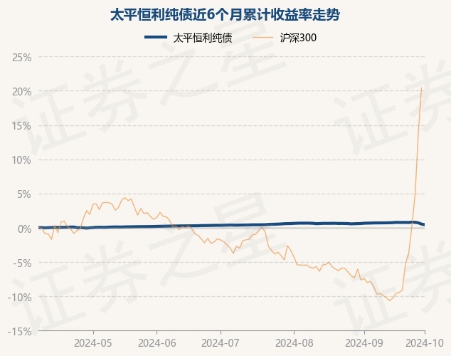 证券之星消息,10月8日,太平恒利纯债最新单位净值为1.0832元,累计净值为1.1678元,较前一交易日下跌0.08%。历史数据显示该基金近1个月下跌0.25%,近3个月上涨0.07%,近6个月上涨0.45%,近1年上涨1.64%。该基金近6个月的累计收益率走势如下图: