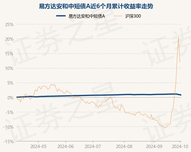 证券之星消息,10月9日,易方达安和中短债A最新单位净值为1.0739元,累计净值为1.1139元,较前一交易日下跌0.15%。历史数据显示该基金近1个月下跌0.26%,近3个月上涨0.03%,近6个月上涨0.74%,近1年上涨2.64%。该基金近6个月的累计收益率走势如下图: